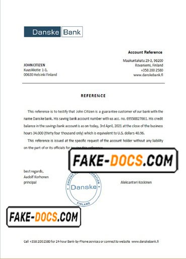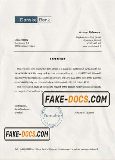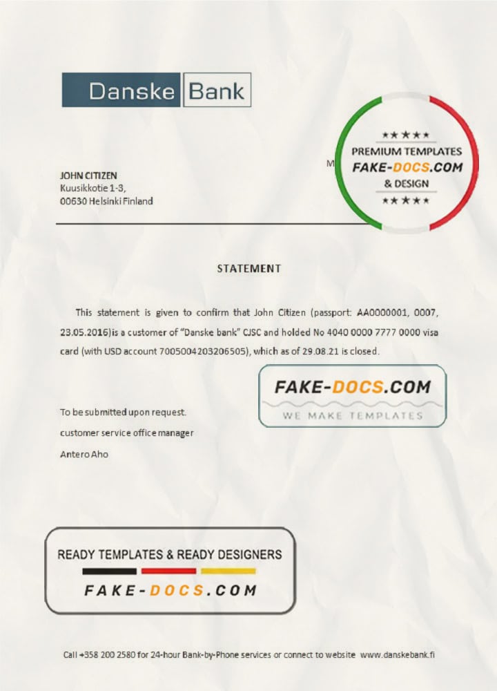 Finland Danske bank account closure reference letter template in Word and PDF format