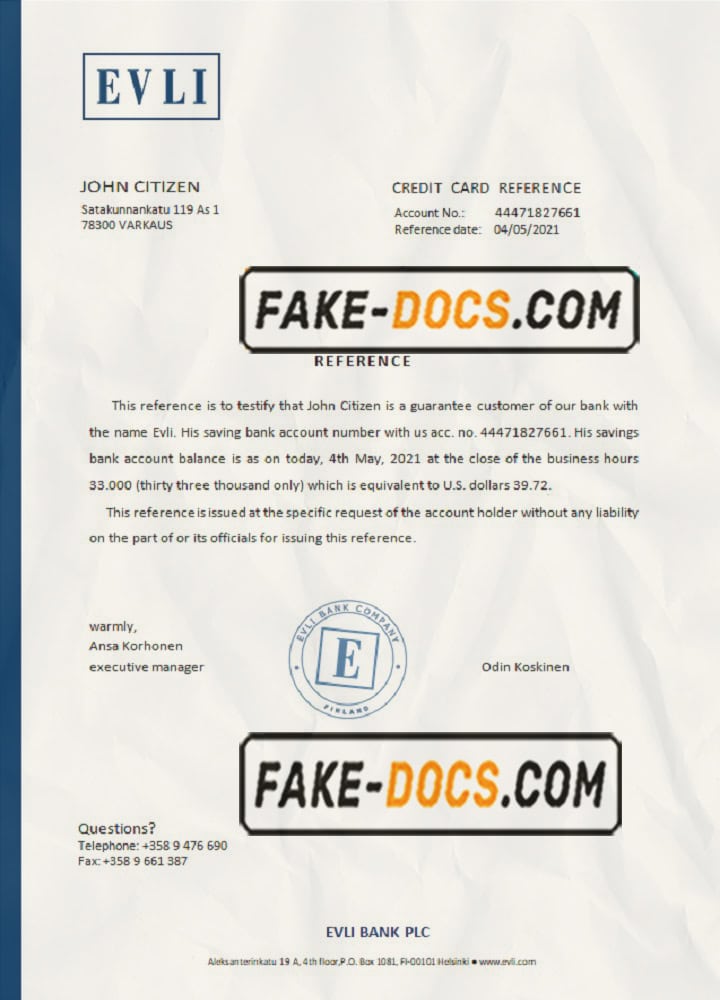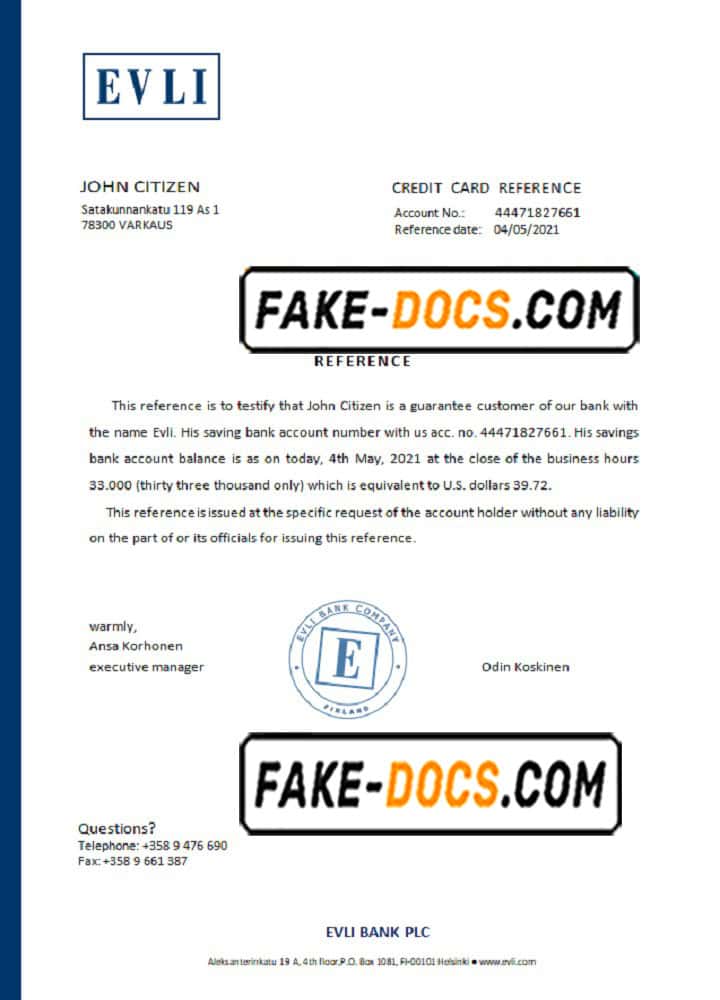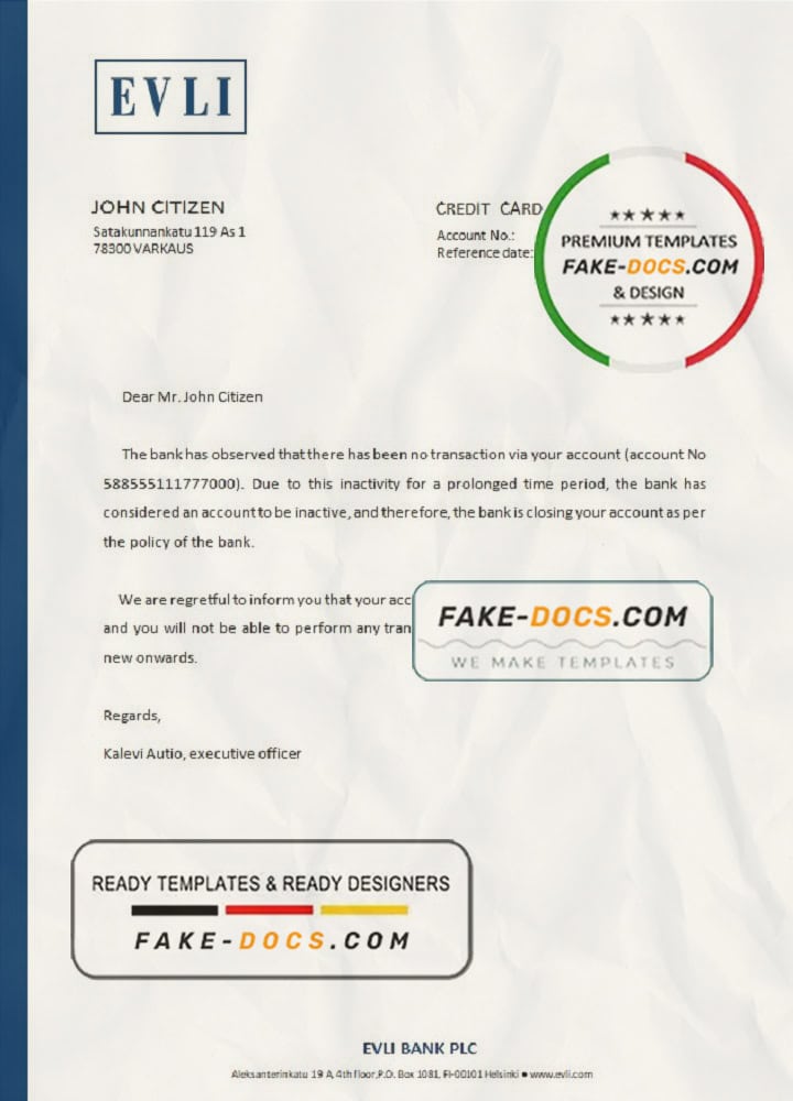 Finland Evli bank account closure reference letter template in Word and PDF format