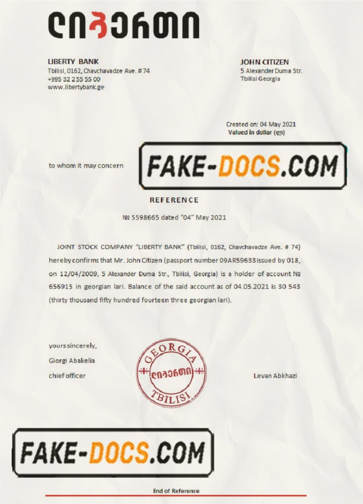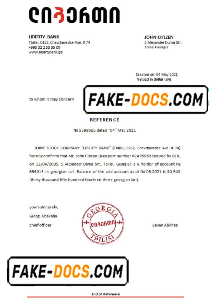 Georgia Liberty bank account reference letter template in Word and PDF format