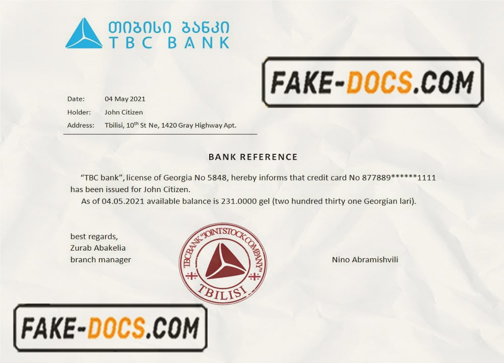 Georgia TBC bank account closure reference letter template in Word and PDF format