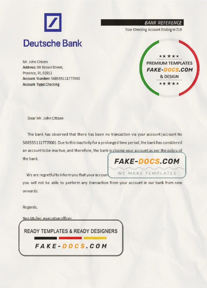 Germany Deutsche bank account closure reference letter template in Word and PDF format