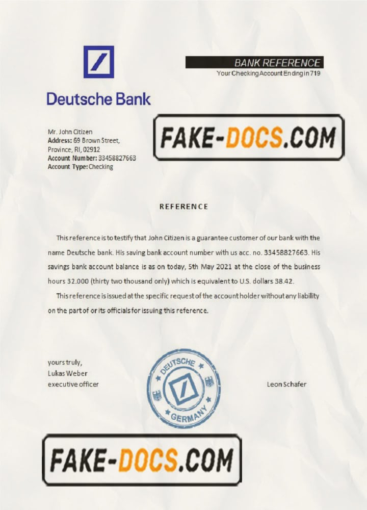 Germany Deutsche bank account reference letter template in Word and PDF format