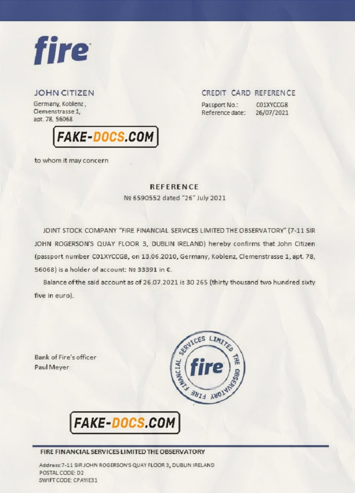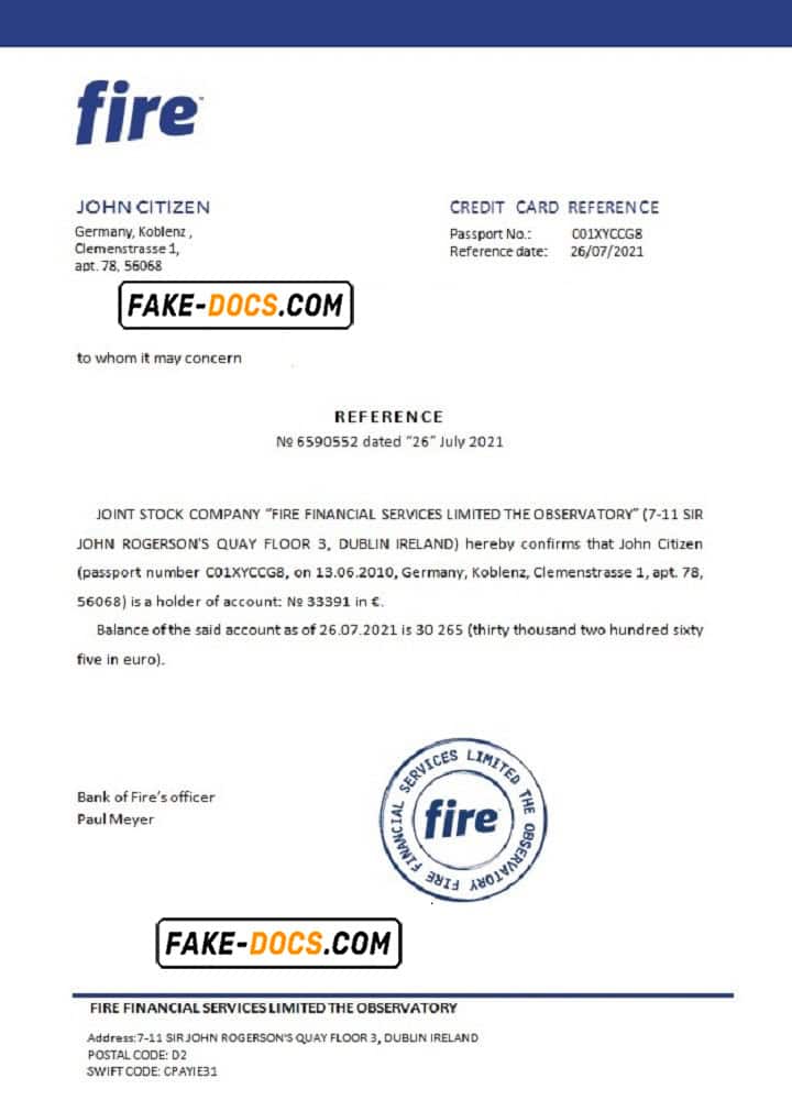 Germany Fire bank account balance reference letter template in Word and PDF format