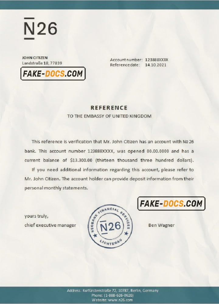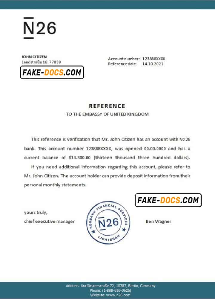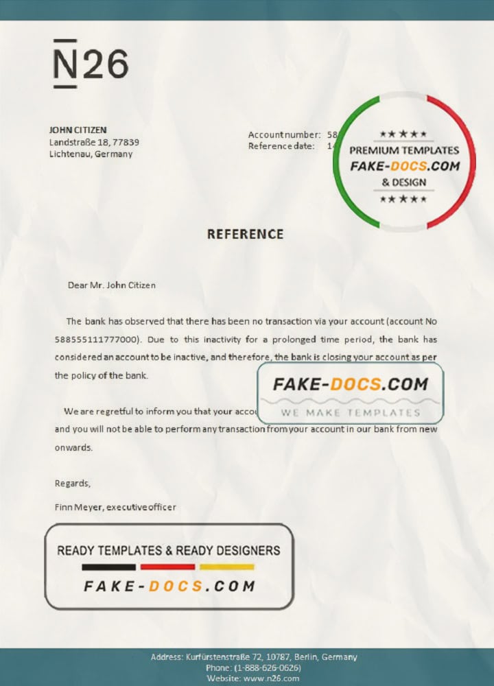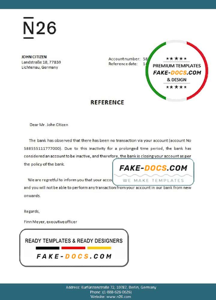 Germany N26 bank account closure reference letter template in Word and PDF format