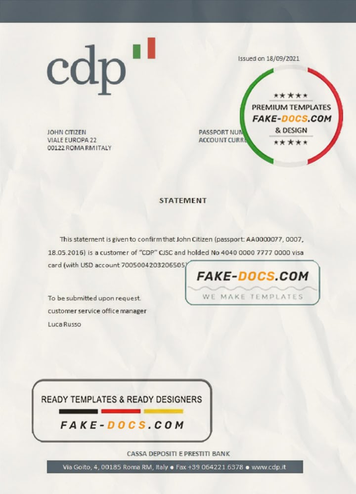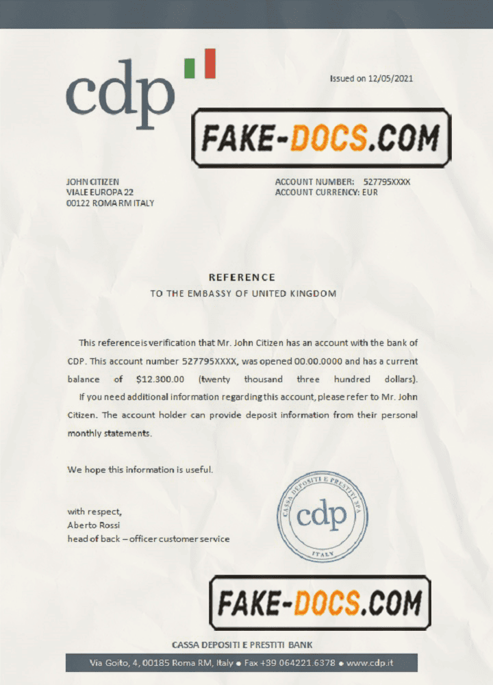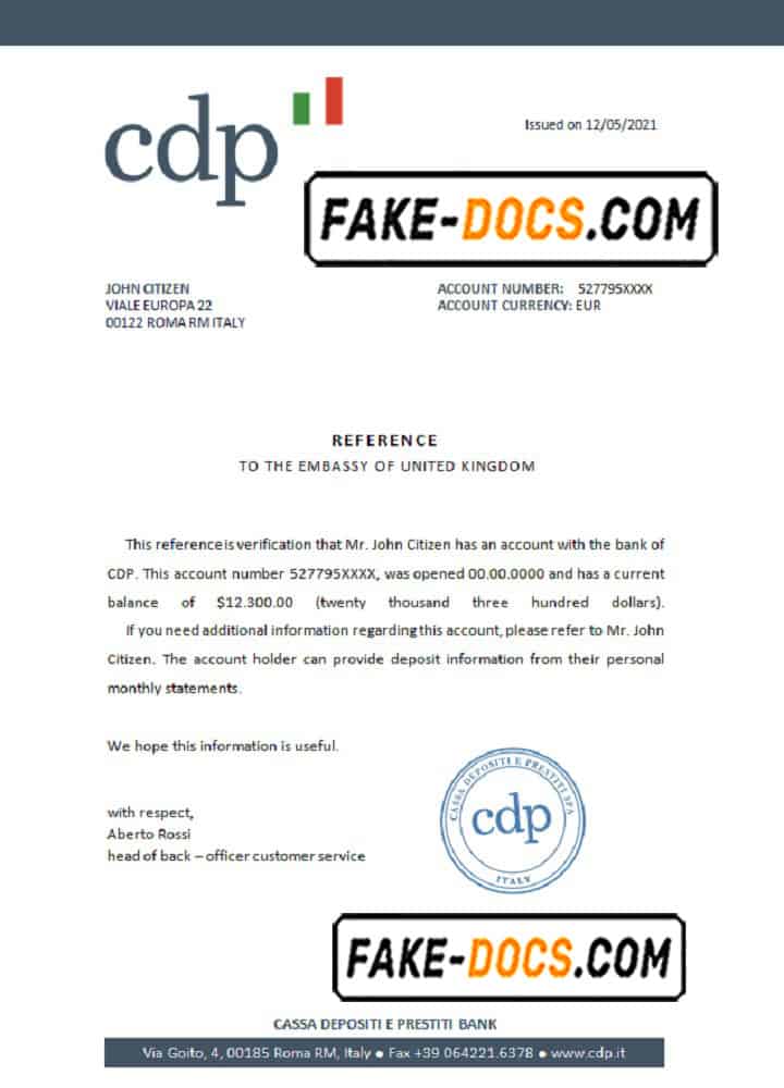 Italy CDP bank account closure reference letter template in Word and PDF format