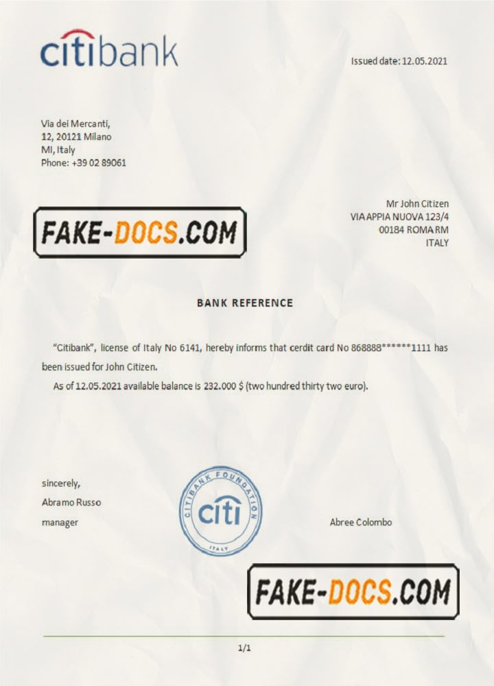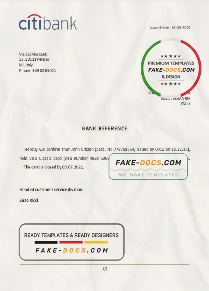 Italy Citibank bank account closure reference letter template in Word and PDF format