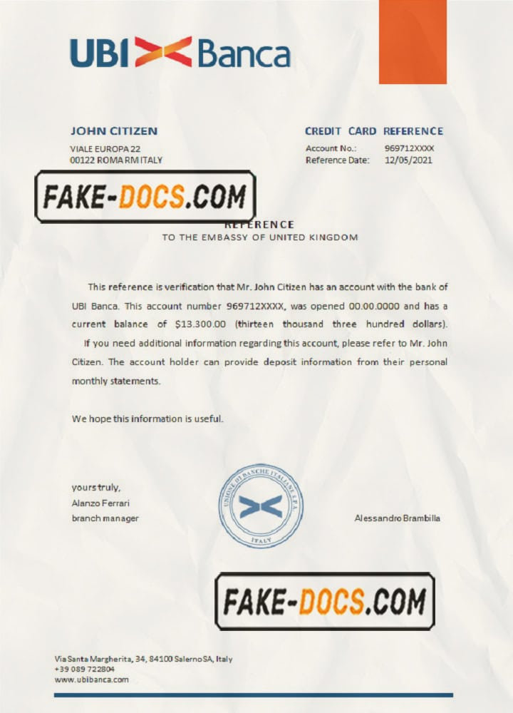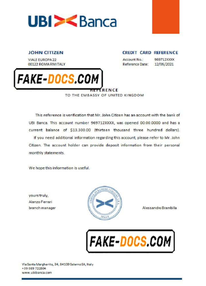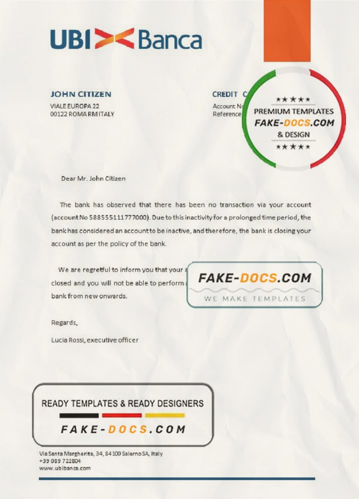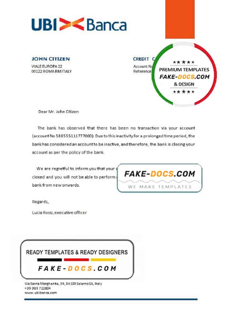 Italy UBI bank account closure reference letter template in Word and PDF format