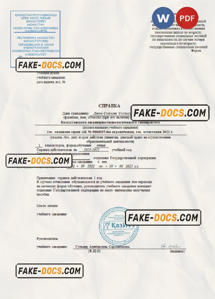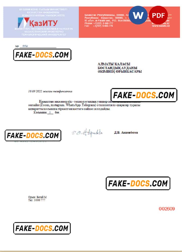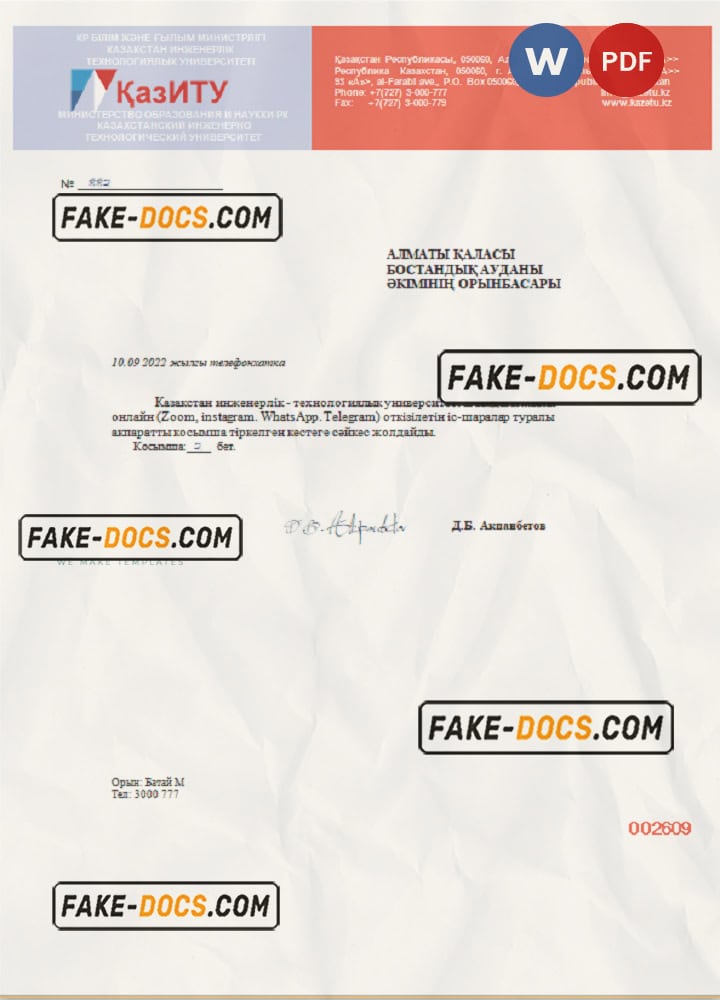 Kazakhstan Engineering and Technology University Word and PDF informative letter template