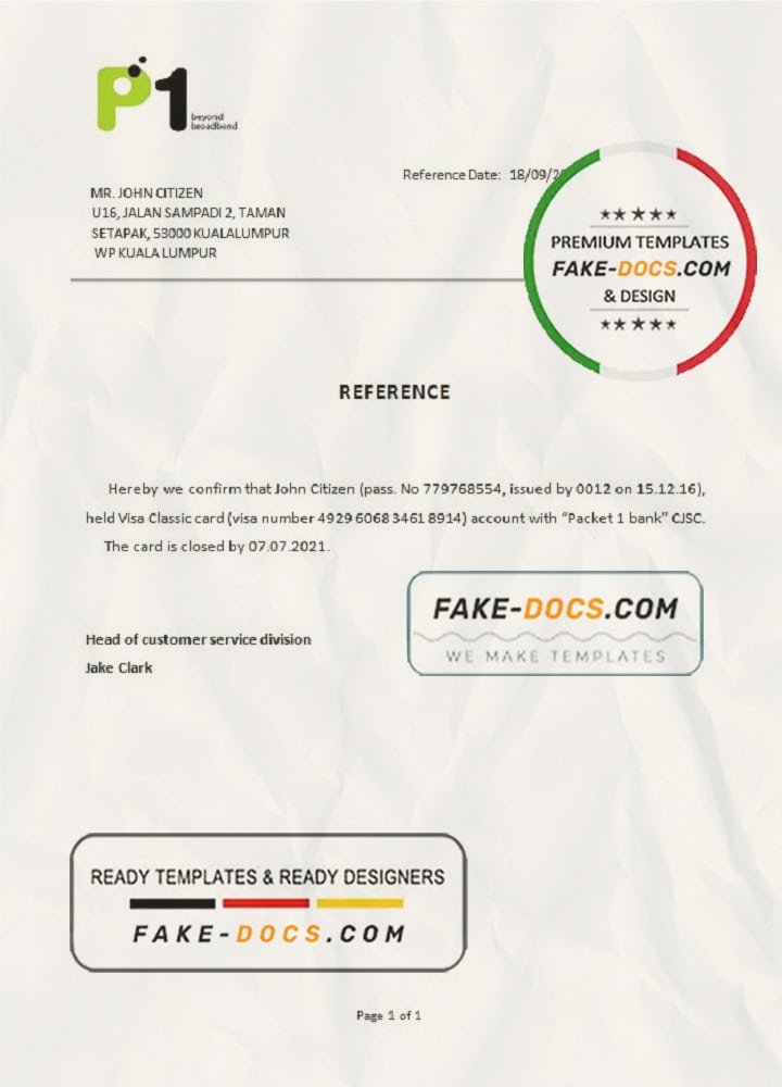 Malaysia Packet 1 Network bank account closure reference letter template in Word and PDF format