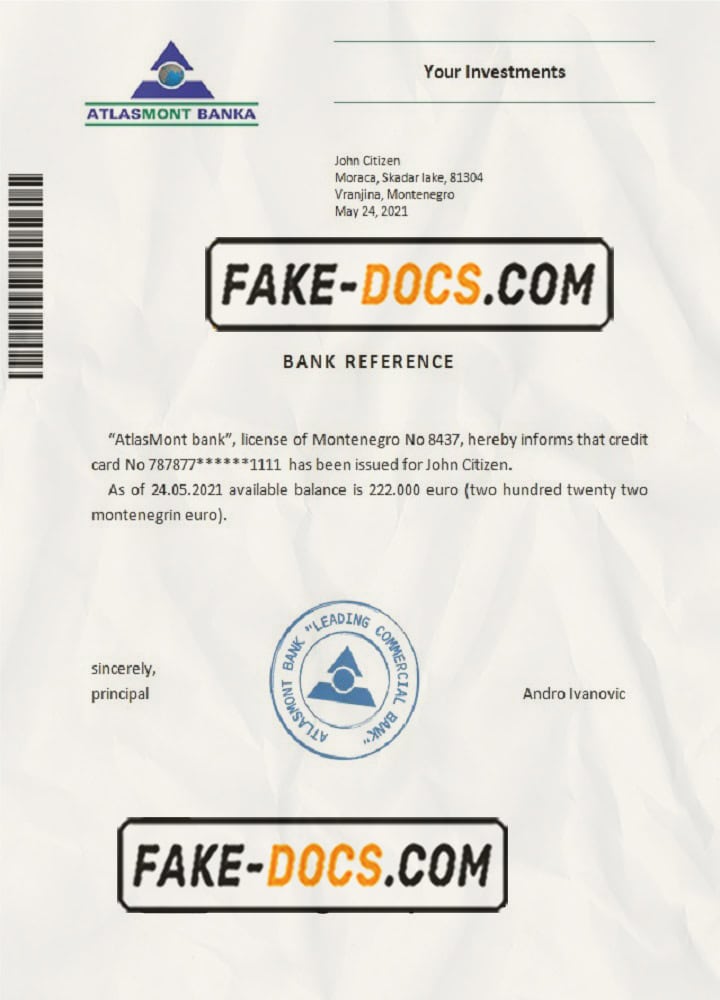 Montenegro Atlasmont banka bank reference letter template in Word and PDF format