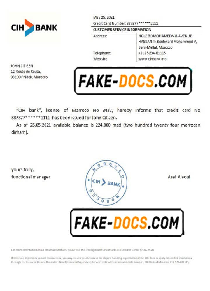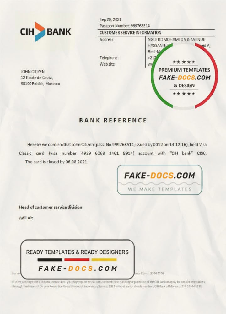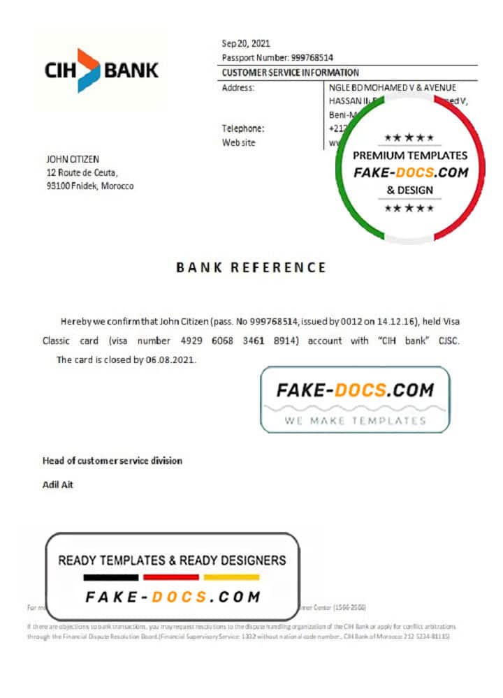 Morocco CIH Bank bank reference letter template in Word and PDF format
