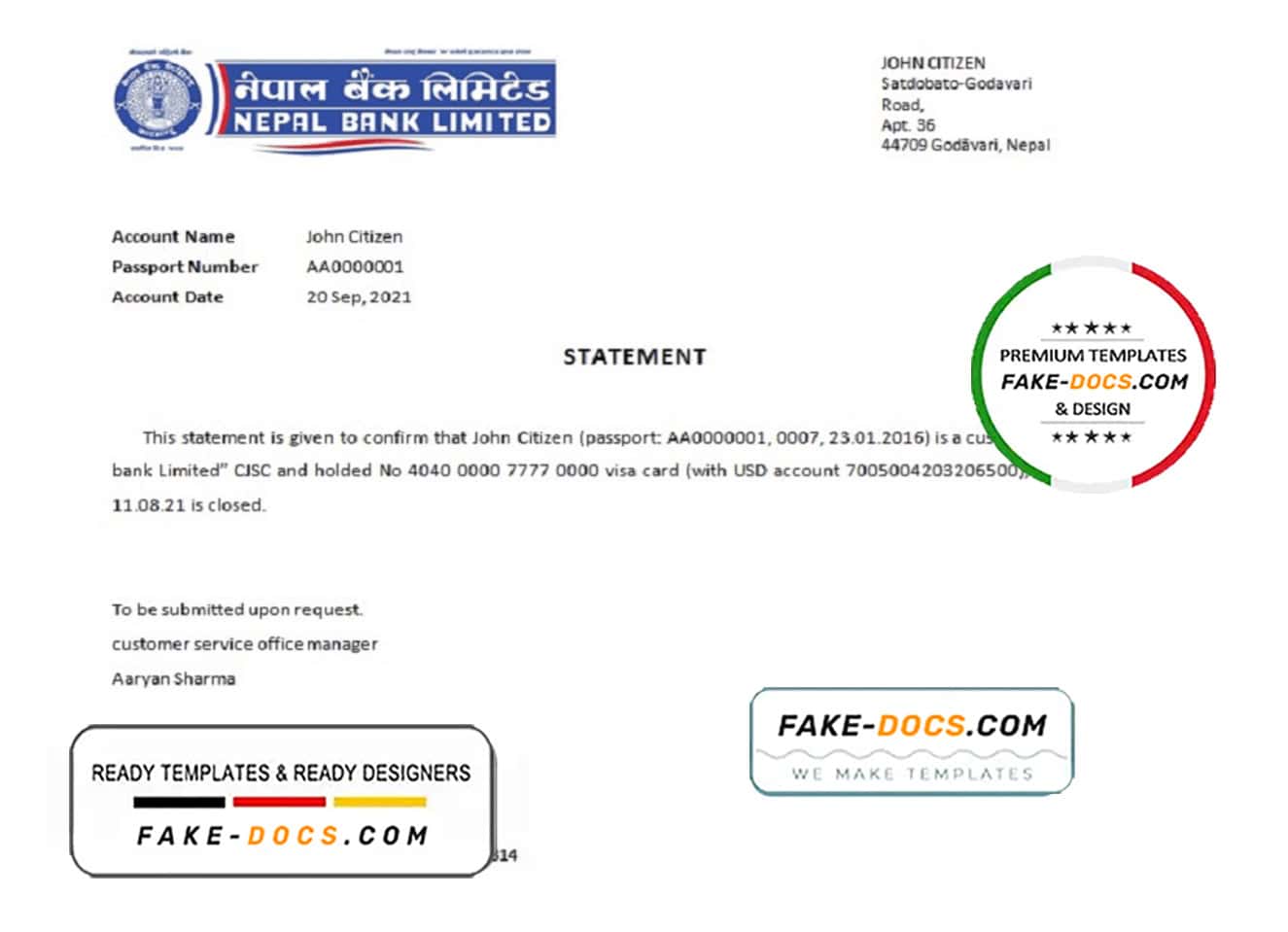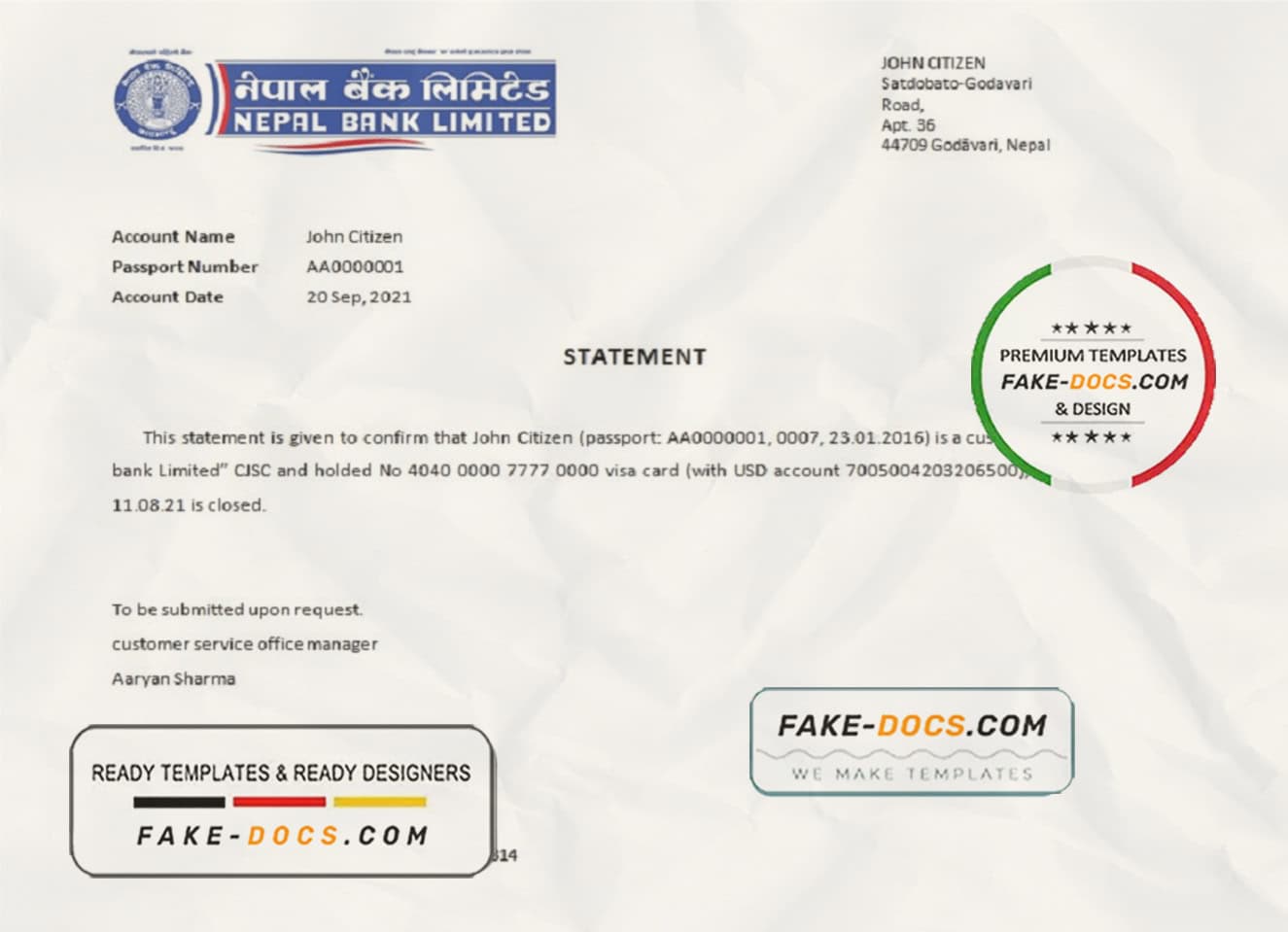 Nepal Nepal bank account closure reference letter template in Word and PDF format