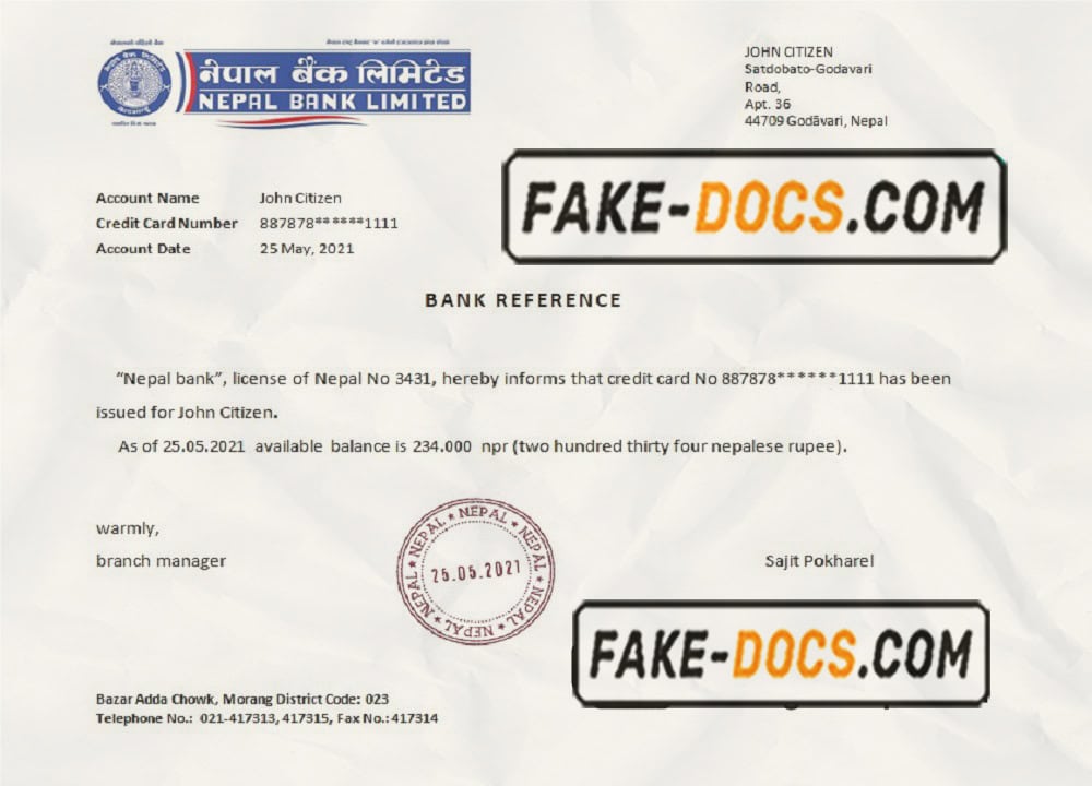 Nepal Nepal Bank bank reference letter template in Word and PDF format