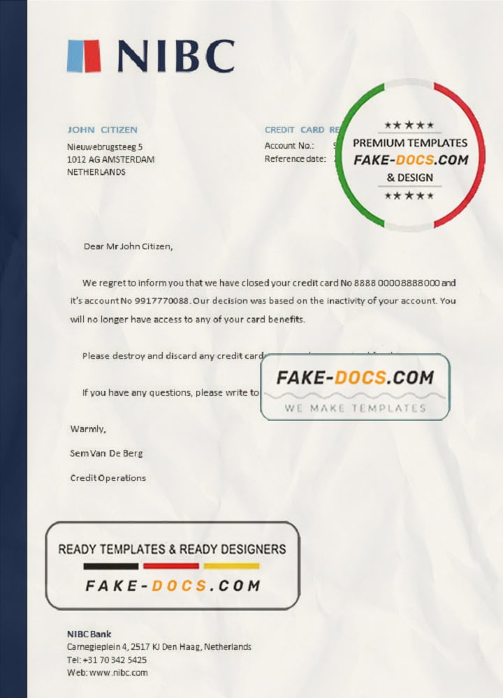 Netherlands NIBC Bank bank account closure certificate template in Word and PDF format