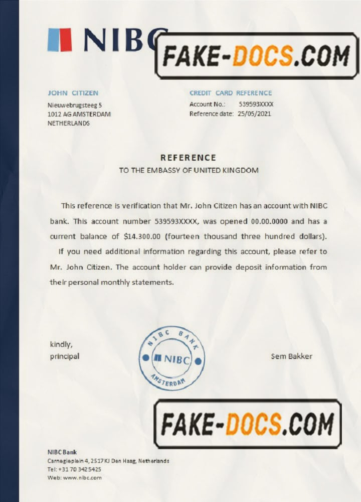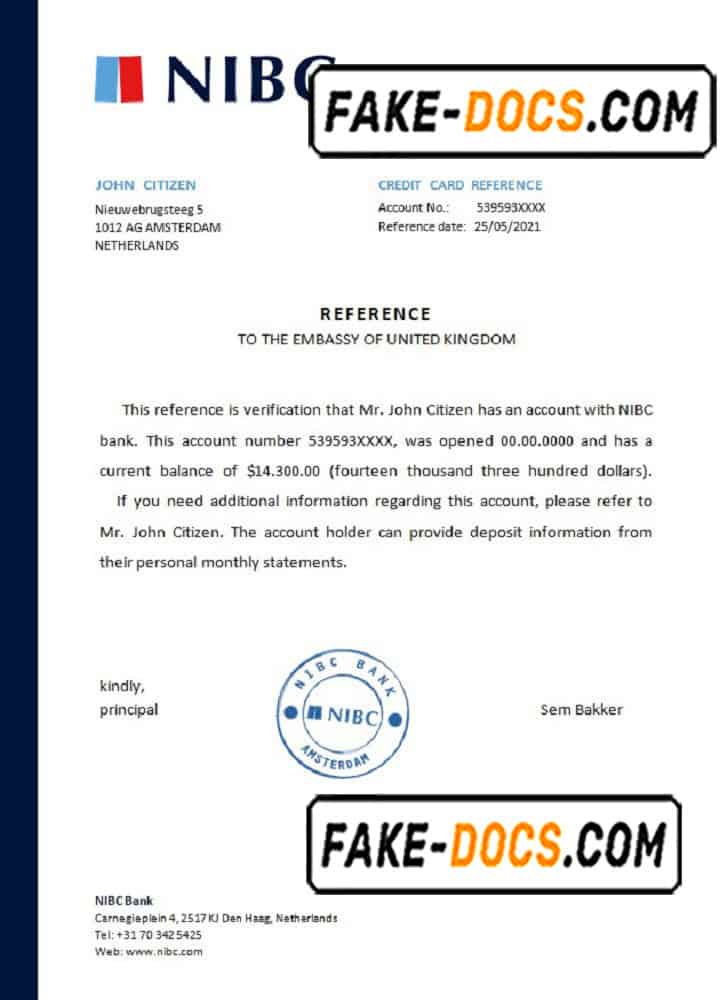 Netherlands NIBC Bank bank certificate template in Word and PDF format
