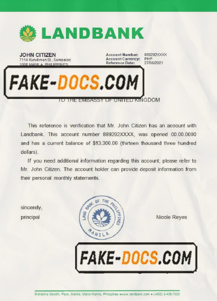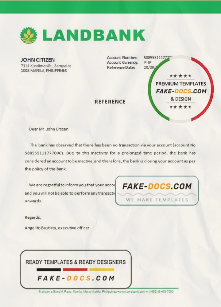 Philippines Landbank bank account closure reference letter template in Word and PDF format