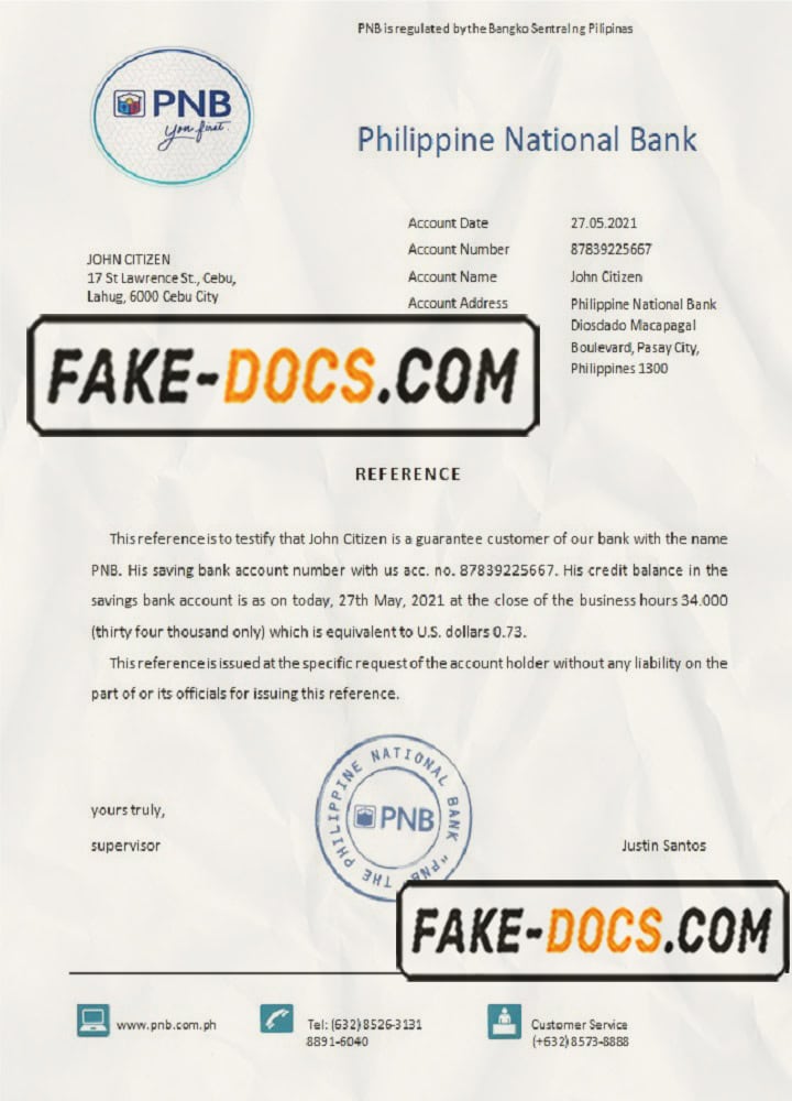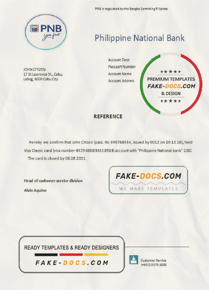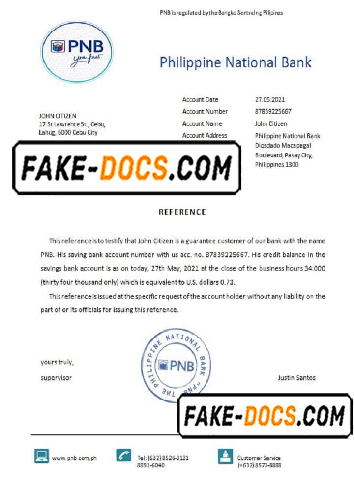 Philippines Philippine National Bank bank reference letter template in Word and PDF format