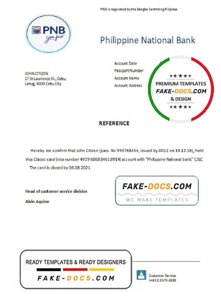 Philippines Philippine National Bank bank account closure reference letter template in Word and PDF format