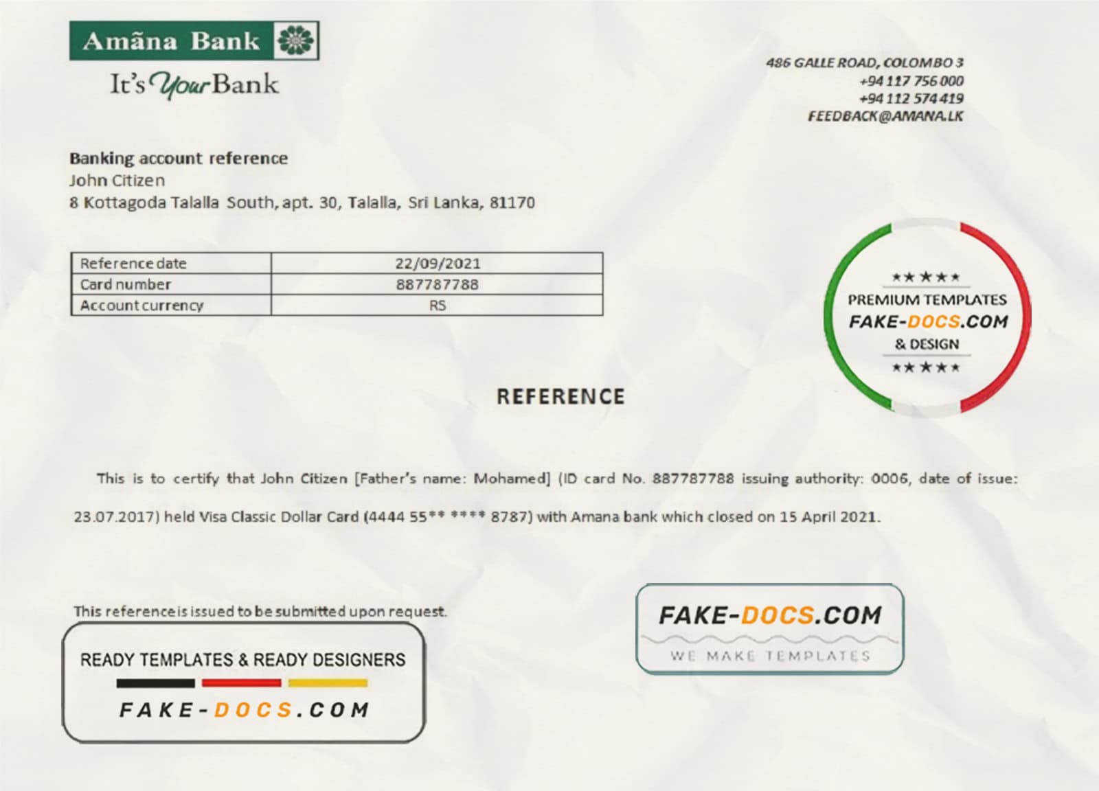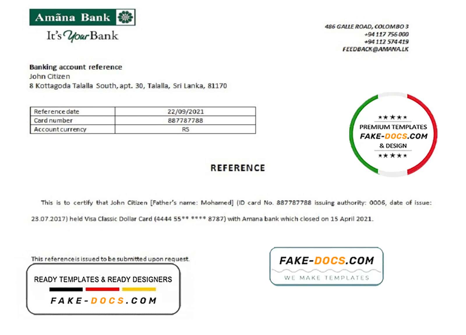 Sri Lanka Amana Bank bank account closure reference letter template in Word and PDF format