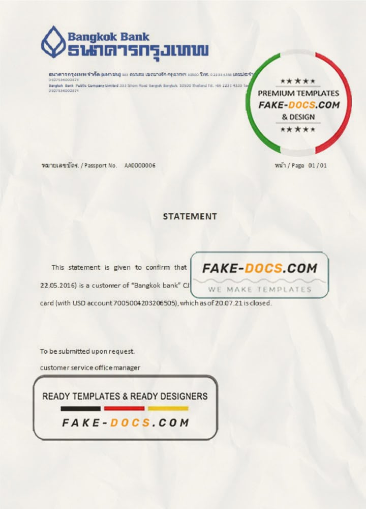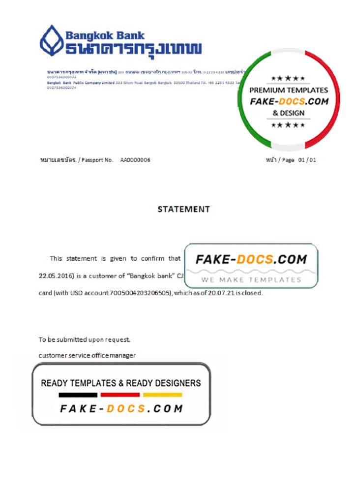 Thailand Bangkok Bank account closure reference letter template in Word and PDF format