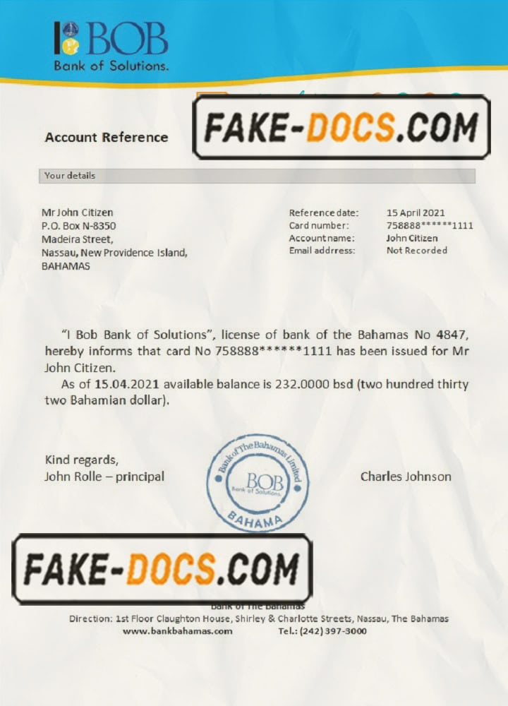 The Bahamas Bank of The Bahamas reference bank reference letter template in Word and PDF format
