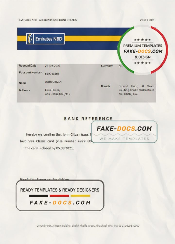 UAE Emirates NBD bank account closure reference letter template in Word and PDF format