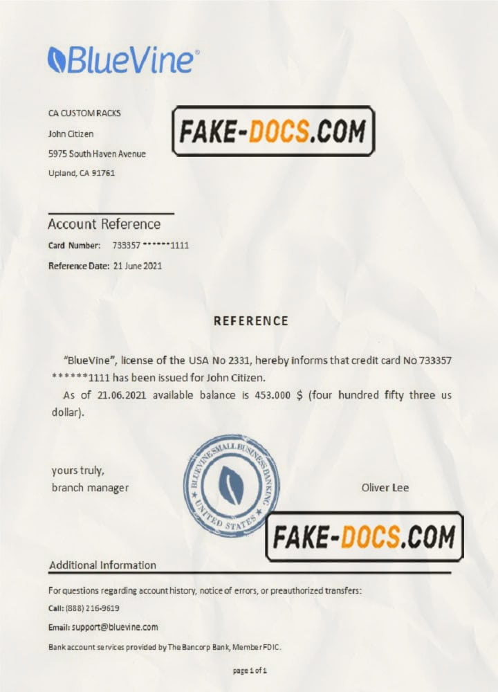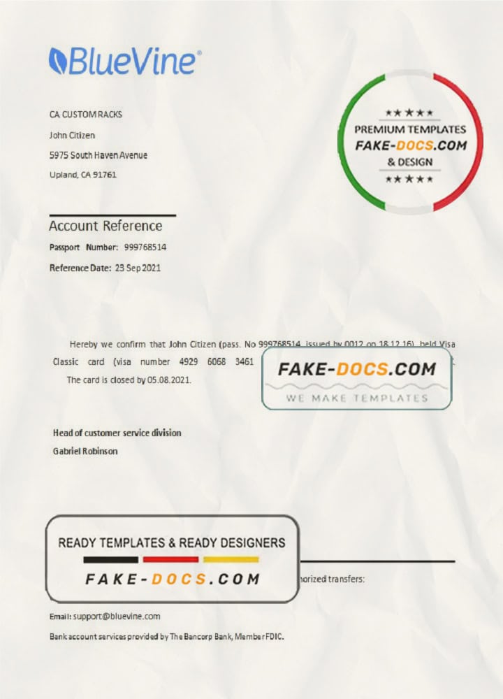 USA BlueVine bank account closure reference letter template in Word and PDF format