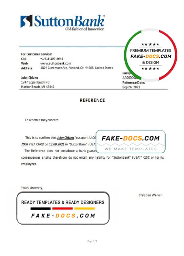 USA Sutton Bank bank account closure reference letter template in Word and PDF format