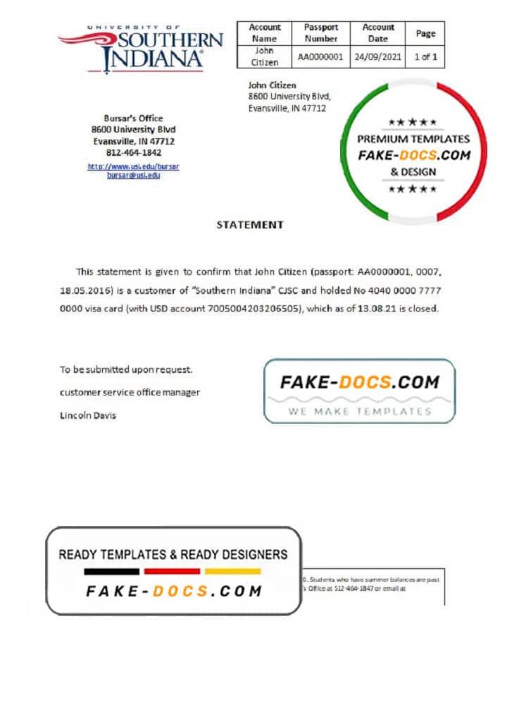 USA Southern Indiana bank account closure reference letter template in Word and PDF format