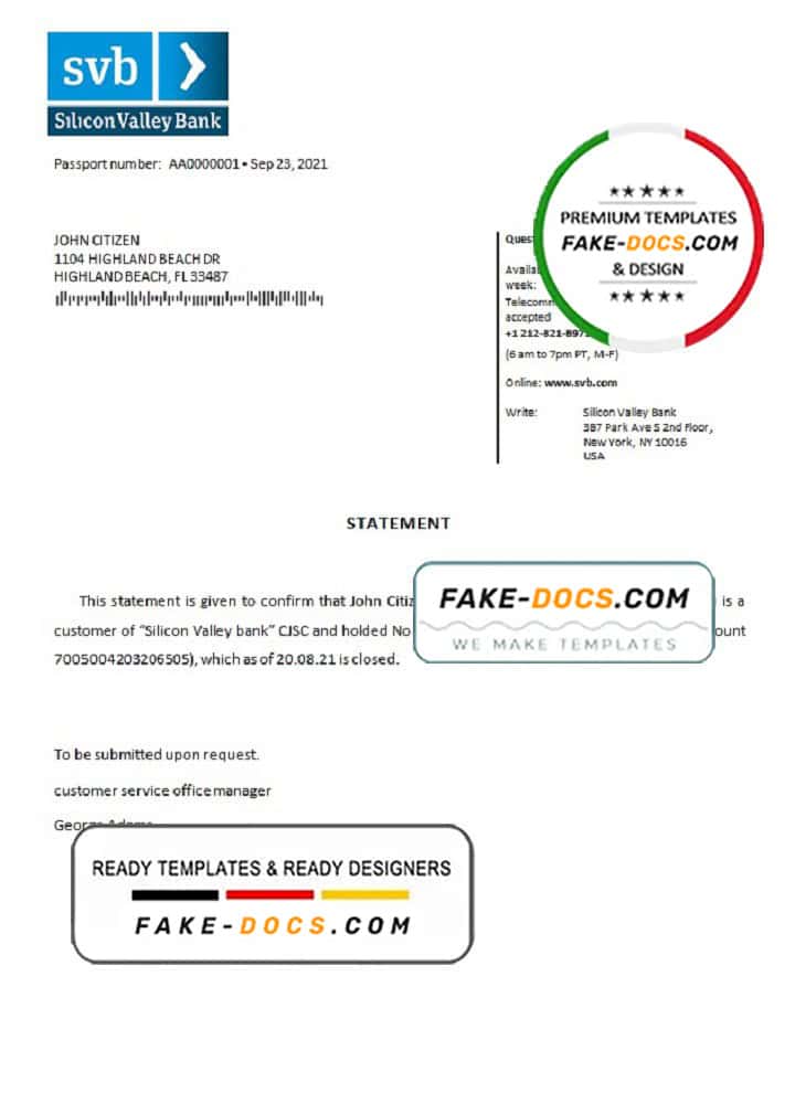 USA Silicon Valley Bank bank account closure reference letter template in Word and PDF format