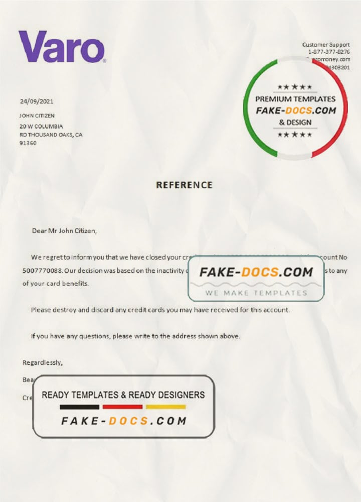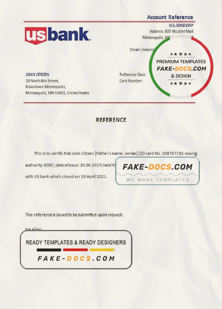 USA US Bank bank account closure reference letter template in Word and PDF format