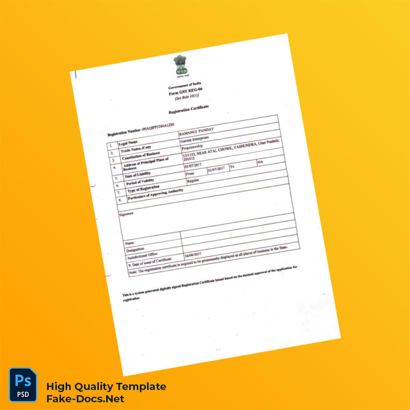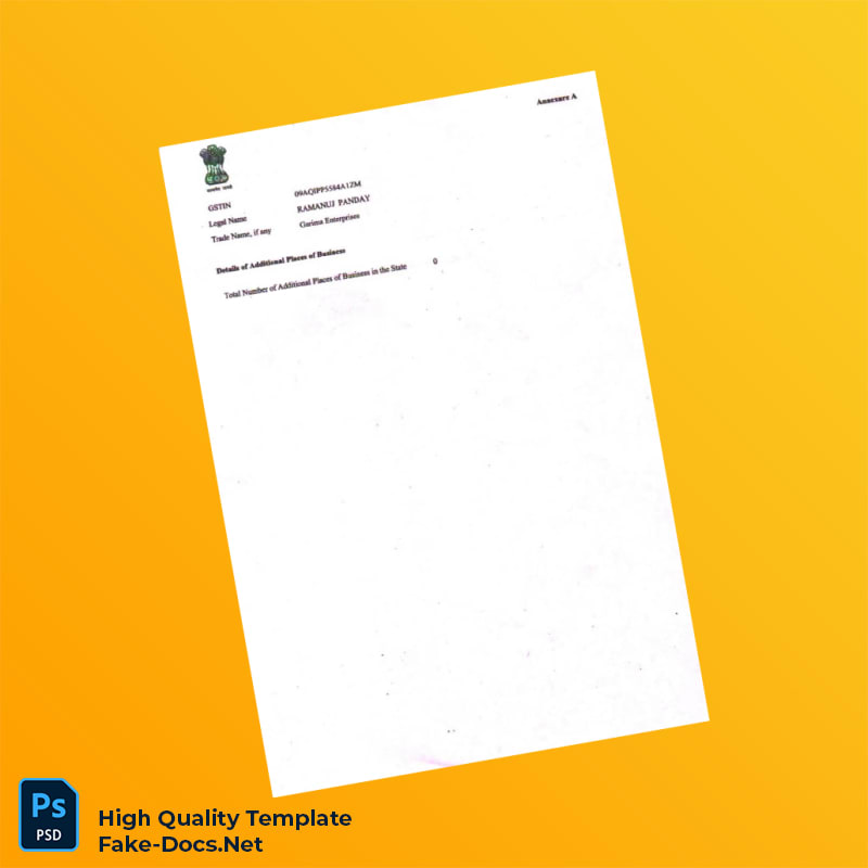 India Tax Authority Editable GST Registration Certificate Template in Word and PDF formats 3 page