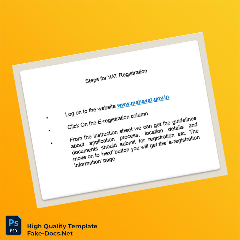 India Tax Authority Editable VAT Registration Certificate Template in Word and PDF formats 7 page