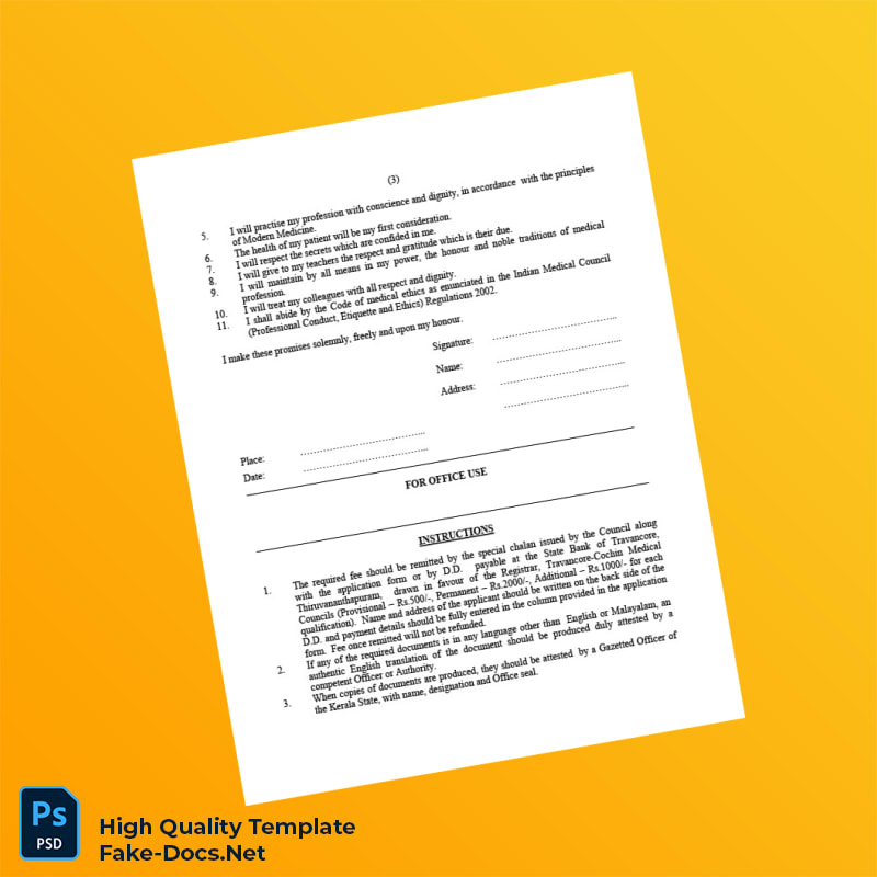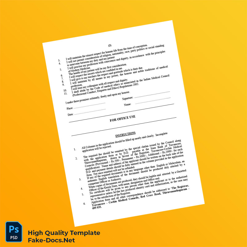 India Travancore-Cochin Council for Modern Medicine Editable Registration Certificate Template in Word and PDF formats 4 page