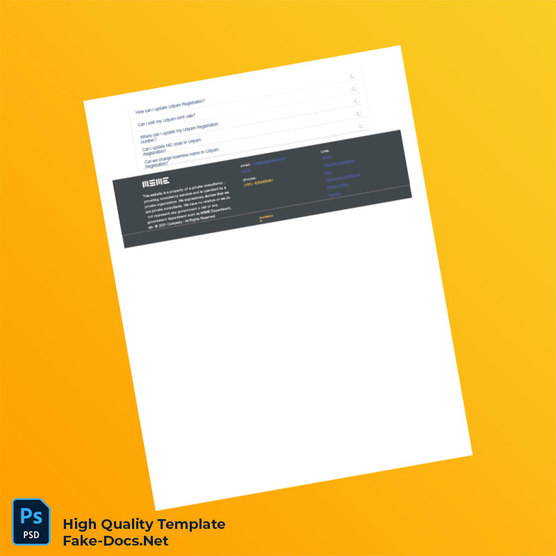 India Udyam Registration Authority Editable Business Registration Certificate Template in Word and PDF formats 3 page