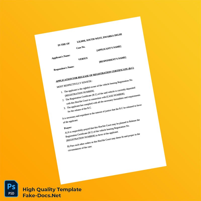 Release of Registration Certificate Editable Application Template in Word and PDF formats 2 page