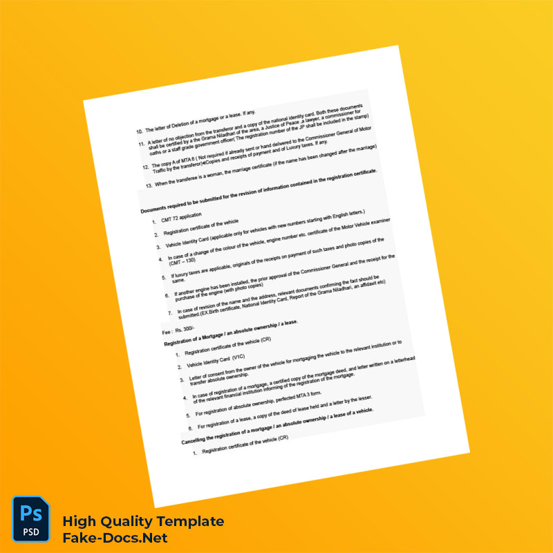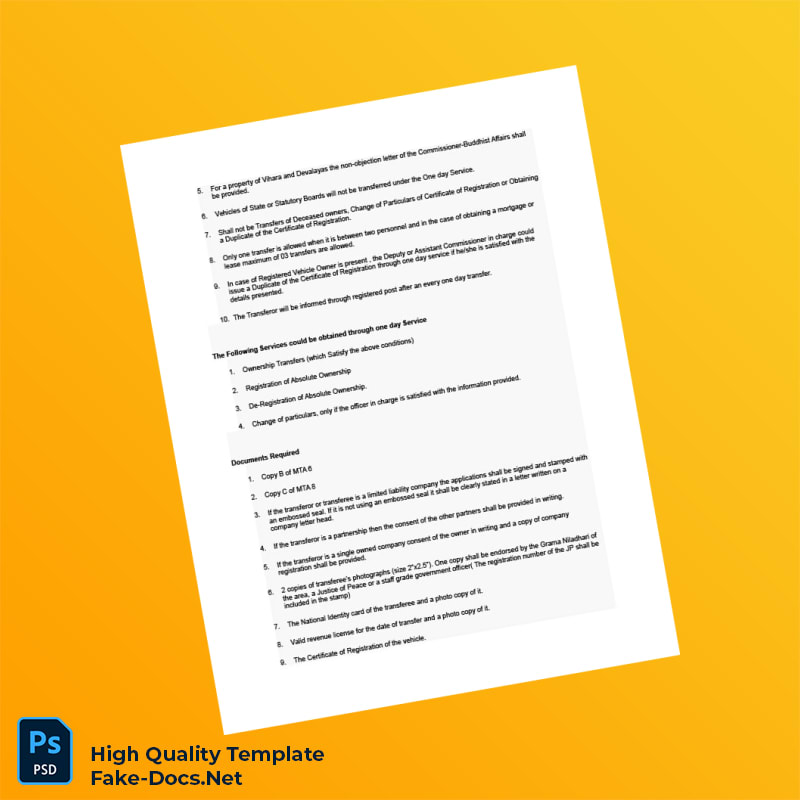 Sri Lanka Ministry of Transport Editable Vehicle Ownership Transfer Registration Template in Word and PDF formats 6 page