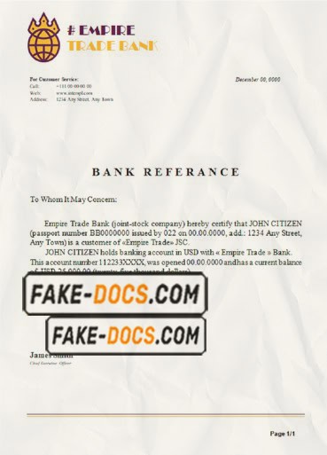 empire trade bank universal multipurpose bank account reference template in Word and PDF format
