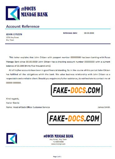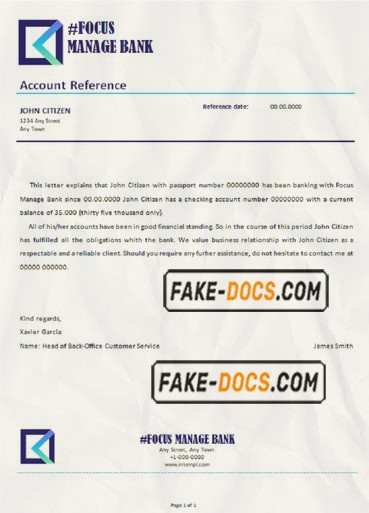 focus manage bank universal multipurpose bank account reference template in Word and PDF format