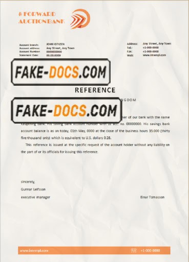 forward auction bank universal multipurpose bank account reference template in Word and PDF format