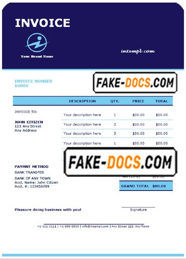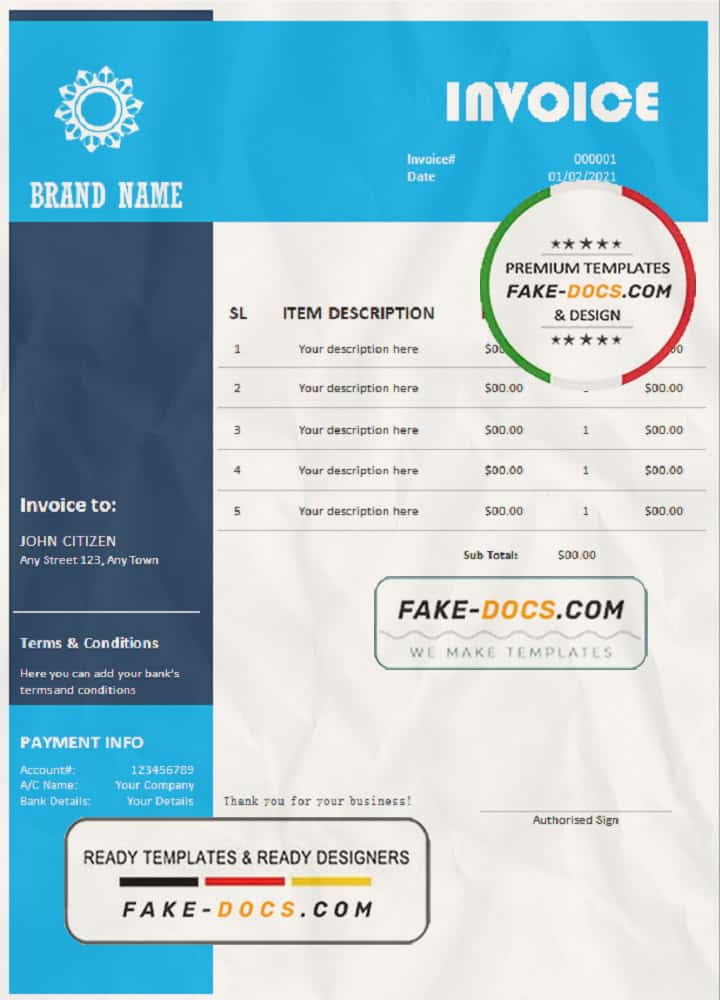 swarming blue universal multipurpose invoice template in Word and PDF format, fully editable