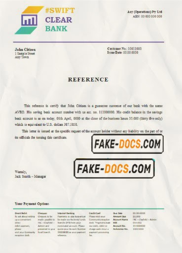 swift clear bank universal multipurpose bank account reference template in Word and PDF format