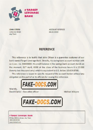 target leverage bank universal multipurpose bank account reference template in Word and PDF format