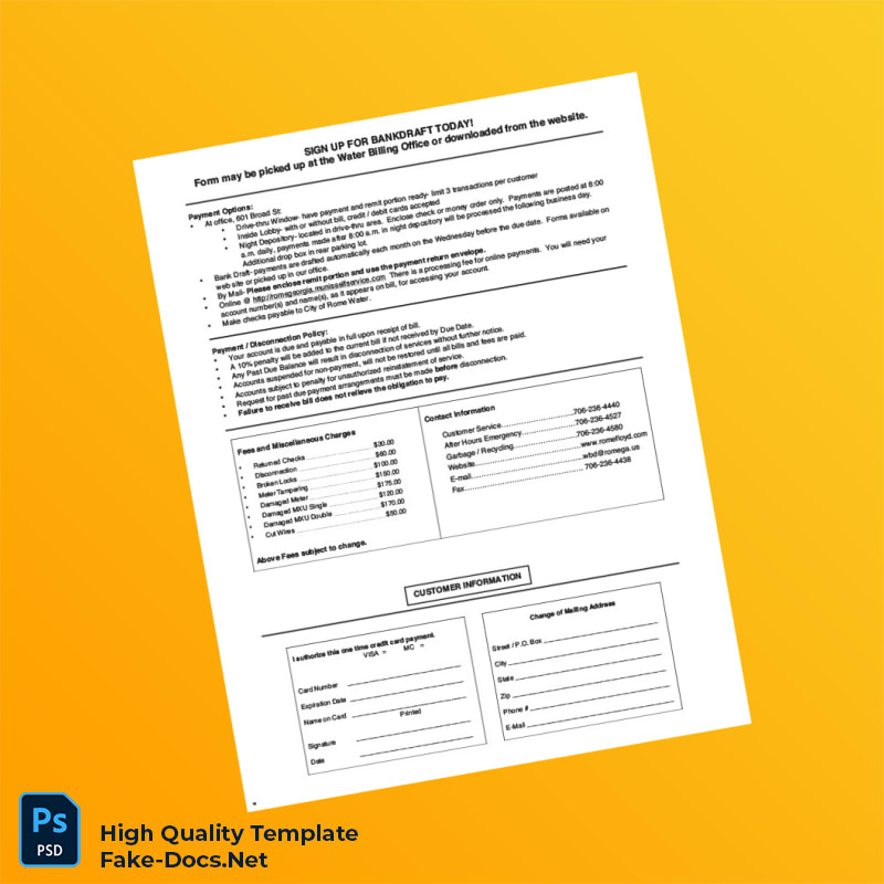 USA City of Rome Editable Utility Bill Template in Word and PDF formats 2 page