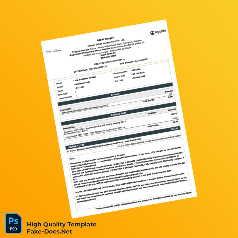 India Adani Aangan Editable Invoice Template in Word and PDF formats 2 page