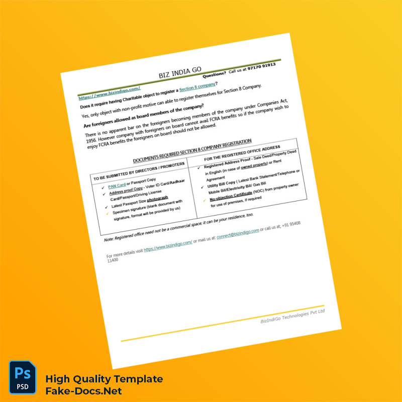 Elevate your business with the India BizIndiGo Technologies Pvt Ltd Editable Section 8 Company Guide Template in Word and PDF formats for seamless compliance.