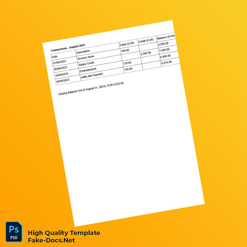 Italy UniCredit S p A Editable Bank Statement Template in Word and PDF formats 2 page