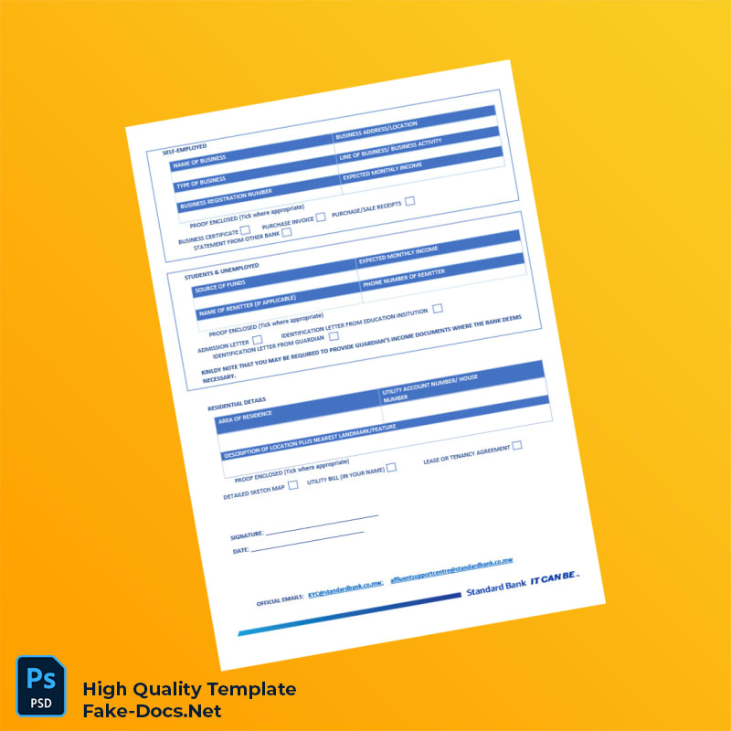 Malawi Standard Bank Editable KYC Update Form Template in Word and PDF formats 2 page