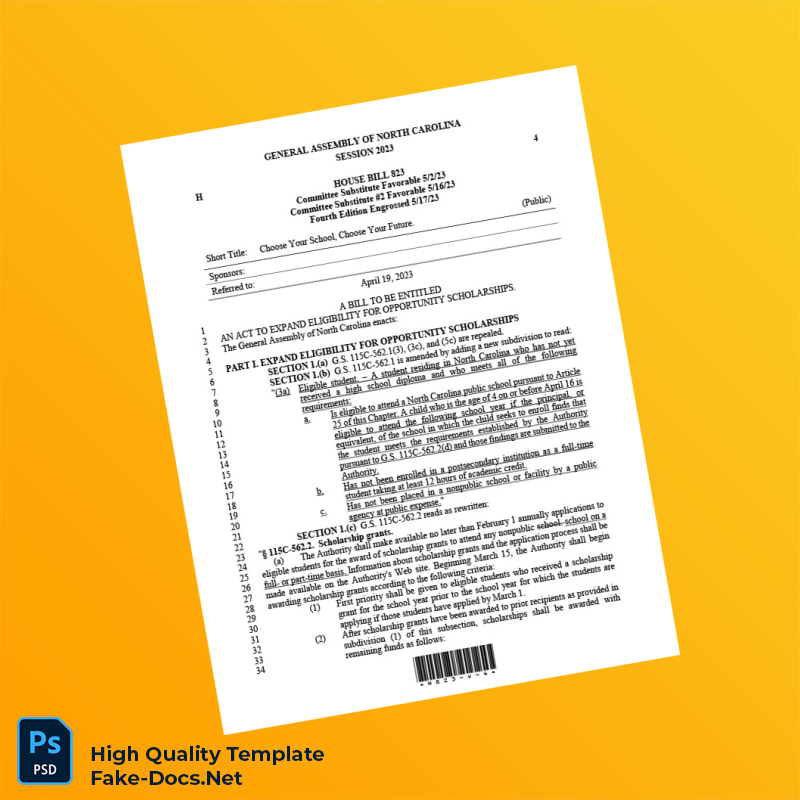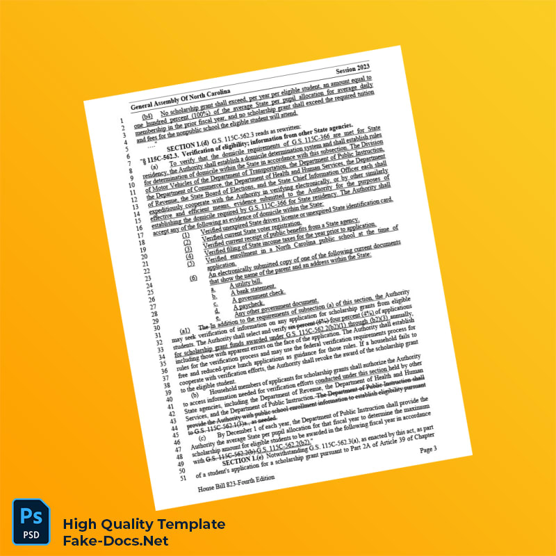 North Carolina General Assembly Editable House Bill Template in Word and PDF formats 4 page
