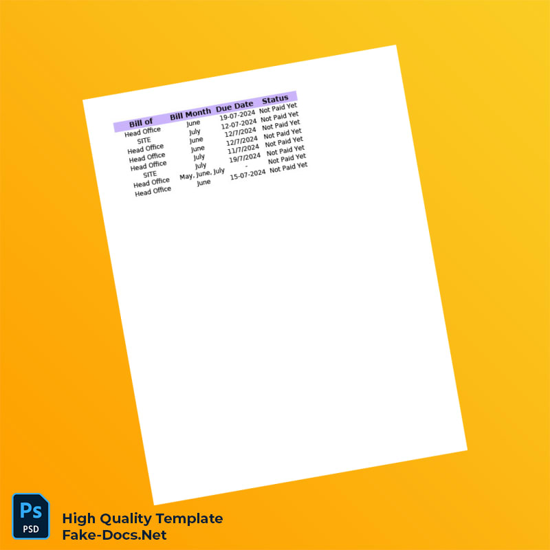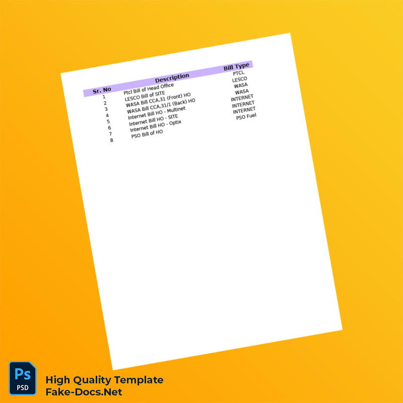 Pakistan WASA Editable Utility Bills Record Template in Word and PDF formats 2 page